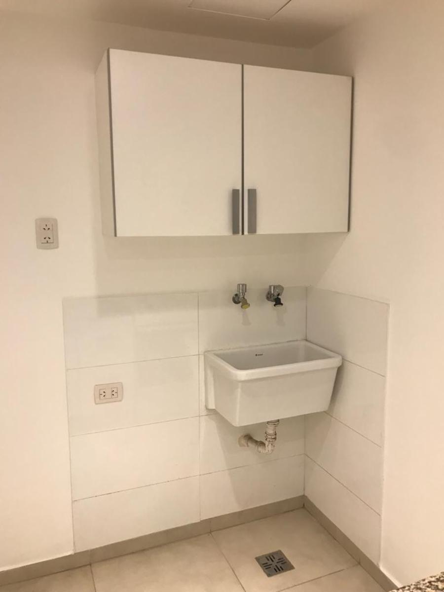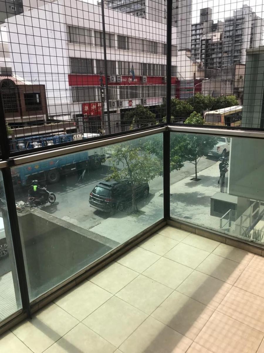 Living-comedor, cocina-lavadero con mueble bajo mesada, extractor y desayunador, baño completo con bañera, dormitorio con placard y balcon hacia el frente